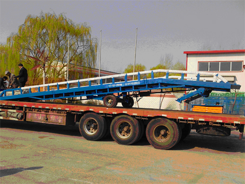 沙特客户订做移动式登车桥发货。客户选订的带支腿式移动式10T登车桥