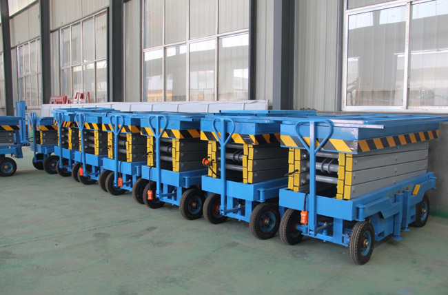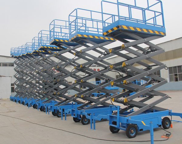 移动式升降机(6米8米10米12米14米16米18米移动式升降机)有人工移动式升降机、电动移动式升降机,另备有手压泵,供停电时使用,具有移动灵 活、升降平稳、操作方 便、载重量大等特点。升降动力分为220V或380V电源,采用国外和国产液压泵站。主要适用于工厂、物业单位、商店装潢、建筑、装饰、场馆馆布置、会议 中心等行业。